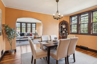 Welcome to this beautiful vintage home located on a corner lot in the charming Kingfield neighborhood. Loaded with character, craftsmanship and architectural details throughout, this 2 level home has been fully preserved and tastefully updated. With over 2,600 finished square feet, it offers a large living room with expansive bay windows and a unique fireplace, a separate dining room with 2 built in hutches, a large kitchen with plenty of cabinets and cozy kitchen dining area – plus a 3 season porch, deck and 2 car garage. There are 3 bedrooms up including a very spacious master bedroom, plus an extra room that could be a home office or large walk in closet. For anyone that loves vintage details, you’ll find gleaming hardwood floors and beautiful woodwork, an intricate cast iron railing on the staircase, original light fixtures, barrel vaulted living room and more. Lower level includes high ceilings and a large family room, laundry and plenty of storage space. Freshly painted and completely move in ready. Just blocks from Lake Harriet, restaurants, coffee shops, parks and more. Enjoy the best of urban living in this wonderful vintage home!