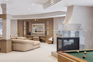 The lower level offers a relaxed, casual atmosphere with refined finishes, perfect for gatherings or quiet evenings at home.