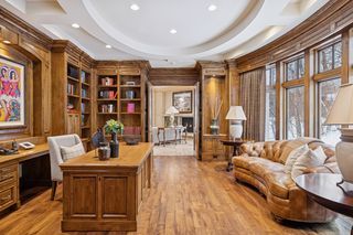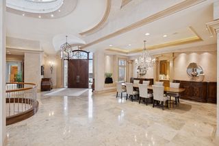 From the moment you step through the grand custom wood doors, you’re greeted by warm, inviting interiors and exquisite craftsmanship throughout. The gourmet kitchen features an oversized island—ideal for both entertaining and everyday living—alongside a working butler’s pantry and abundant built-in storage.